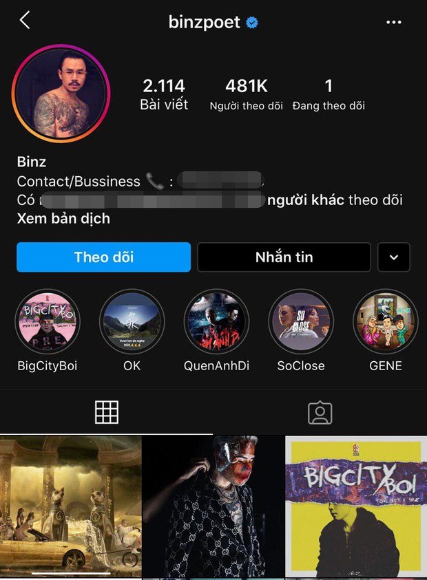 Binz cũng công khai follow mình bạn gái trên Instagram